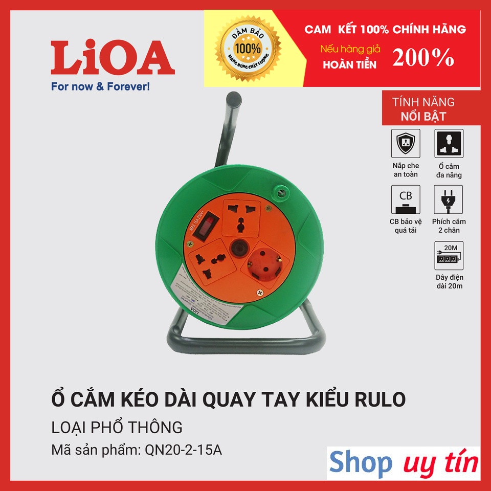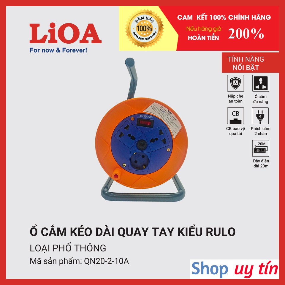 Thiết Bị Điện Gia Dụng > Mạch điện & Phụ tùng > Ổ cắm điện & Dây nối || [CHÍNH HÃNG] Ổ cắm kéo dài quay tay kiểu Rulo LiOA phổ thông dài 20m QN20-2-10A và QN20-2-15A đa năng có nắp che an toànCòn hàng