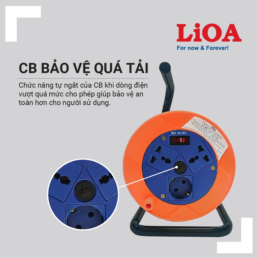 Giới thiệu [CHÍNH HÃNG] Ổ cắm kéo dài quay tay kiểu Rulo LiOA phổ thông dài 20m QN20-2-10A và QN20-2-15A đa năng có nắp che an toàn