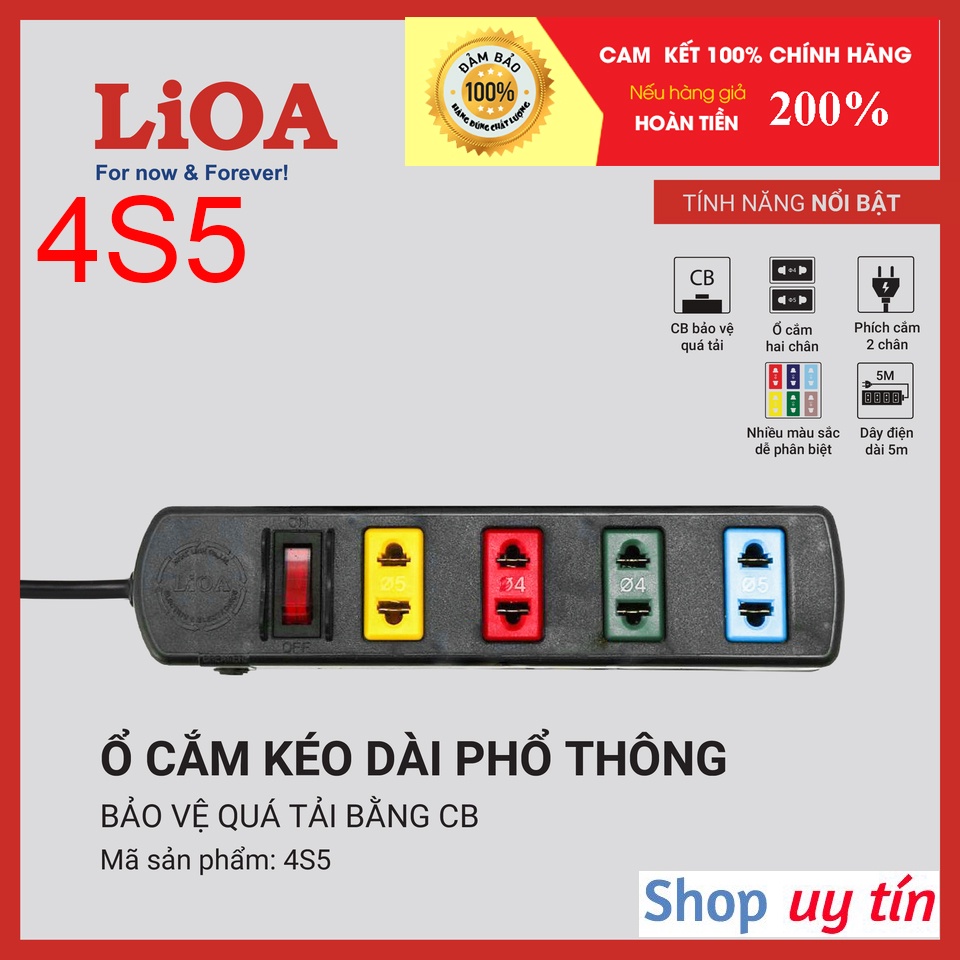 [CHÍNH HÃNG] Ổ cắm LiOA 4 lỗ kéo dài phổ thông 4S3 (3m) - 4S5 (5m) 4 ổ cắm 2 chấu 1 công tắc 2200W 10A có CB quá tải