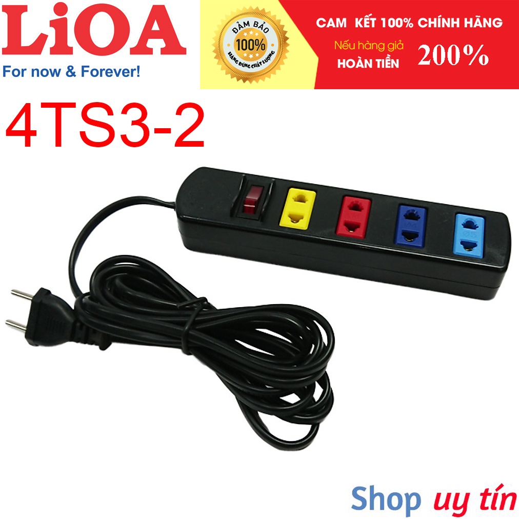 Thiết Bị Điện Gia Dụng > Mạch điện & Phụ tùng > Ổ cắm điện & Dây nối || [CHÍNH HÃNG] Ổ cắm LiOA 4 lỗ kéo dài phổ thông 4TS3-2 (3m) - 4TS5-2 (5m), 4 ổ cắm 2 chấu 1 công tắc công suất 1000WCòn hàng