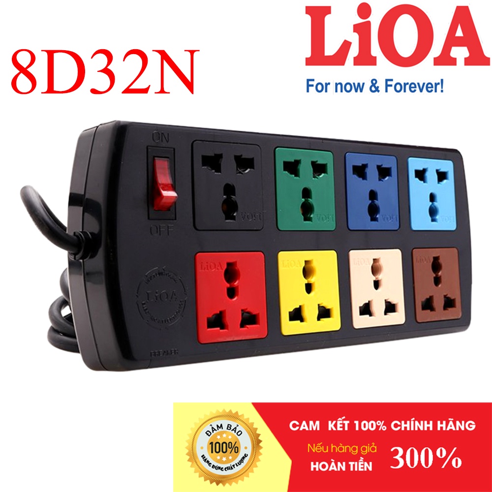 [CHÍNH HÃNG] Ổ cắm LiOA 8 lỗ kéo dài đa năng 8D32N (3m) - 8D52N (5m) - 8D33N (3m 3 lõi) 8 ổ cắm 3 chấu 1 công tắc 2200W