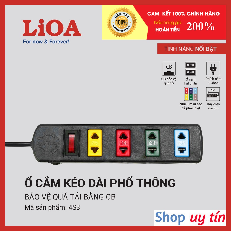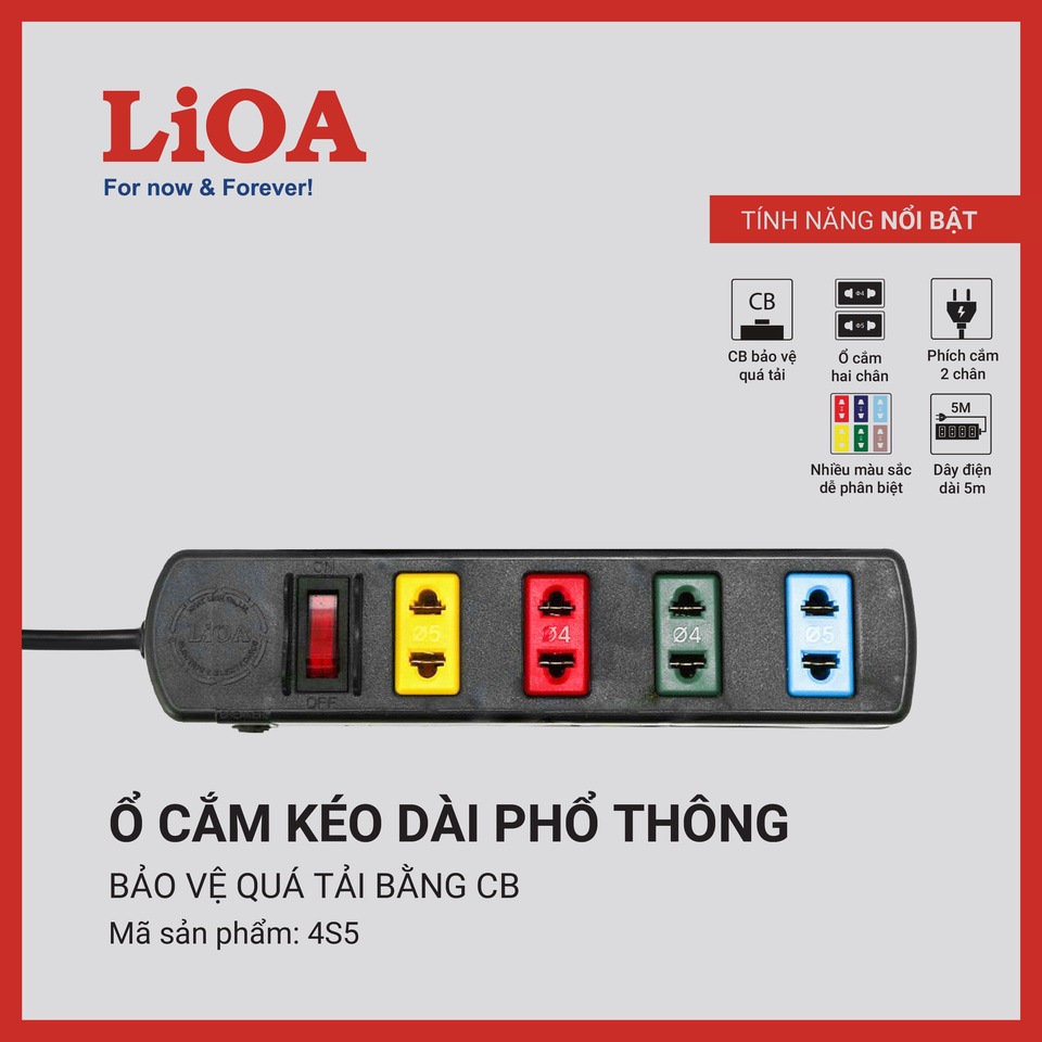 [CHÍNH HÃNG] Ổ cắm LiOA kéo dài phổ thông 3 lỗ, 4 lỗ, 5 lỗ, 6 lỗ, 2 chấu dây dài 3m - 5m, 2 lõi, 1000W - 2200W