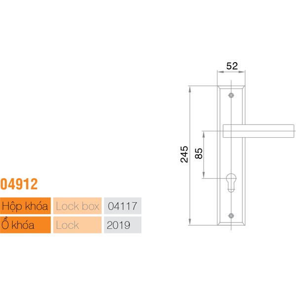 KHÓA CỬA TAY GẠT VIỆT TIỆP 04912 BẰNG HỢP KIM[CHÍNH HÃNG] Ổ Khóa Cửa Đi Tay Gạt VIỆT TIỆP 04912, Hợp Kim KZA3, Cao 245mm, Đố Cửa Dày 40mm, Rộng 50mm