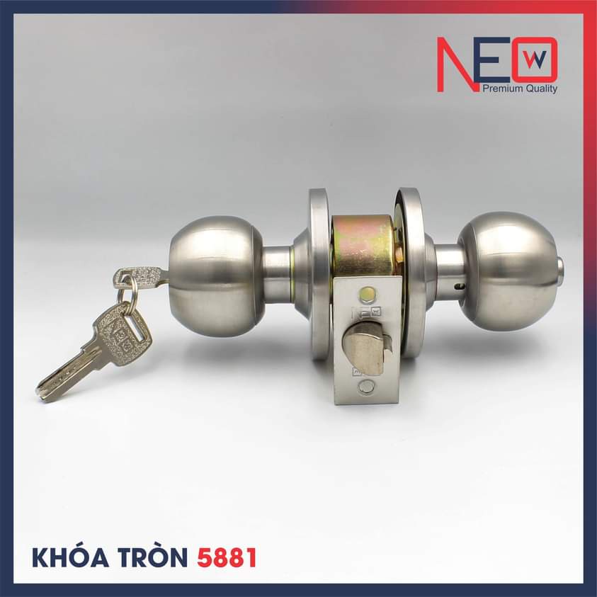 Ổ Khóa Tay Nắm Tròn NEO Cao Cấp INOX 304 Gồm 3 Chìa Khóa, Chuyên Khóa Cửa Đi, Phòng, Tolet, Nhà Kho (Chính Hãng)