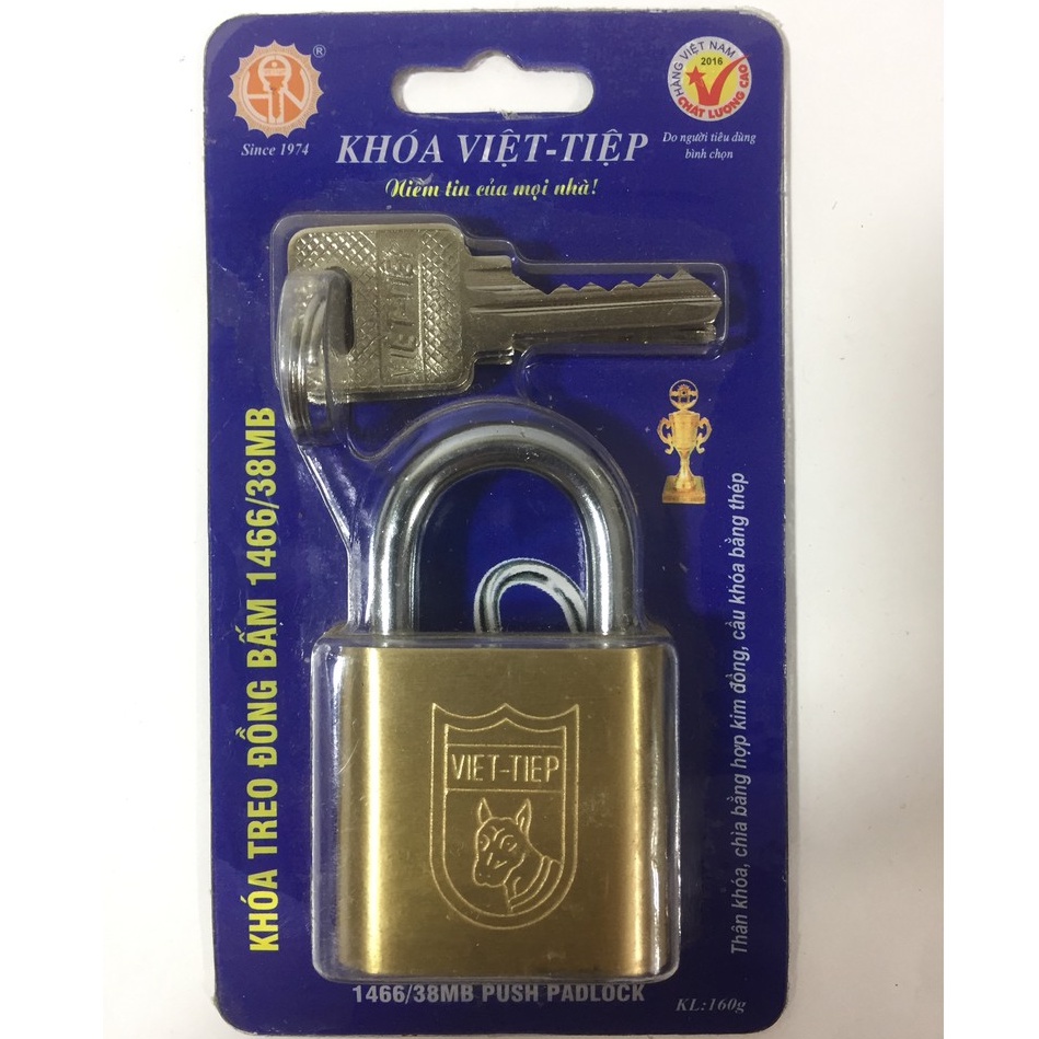 [CHÍNH HÃNG] Ổ Khóa Cửa VIỆT TIỆP Bấm 40mm NO.1466/38MB, Thân Đồng Thau Cao Cấp