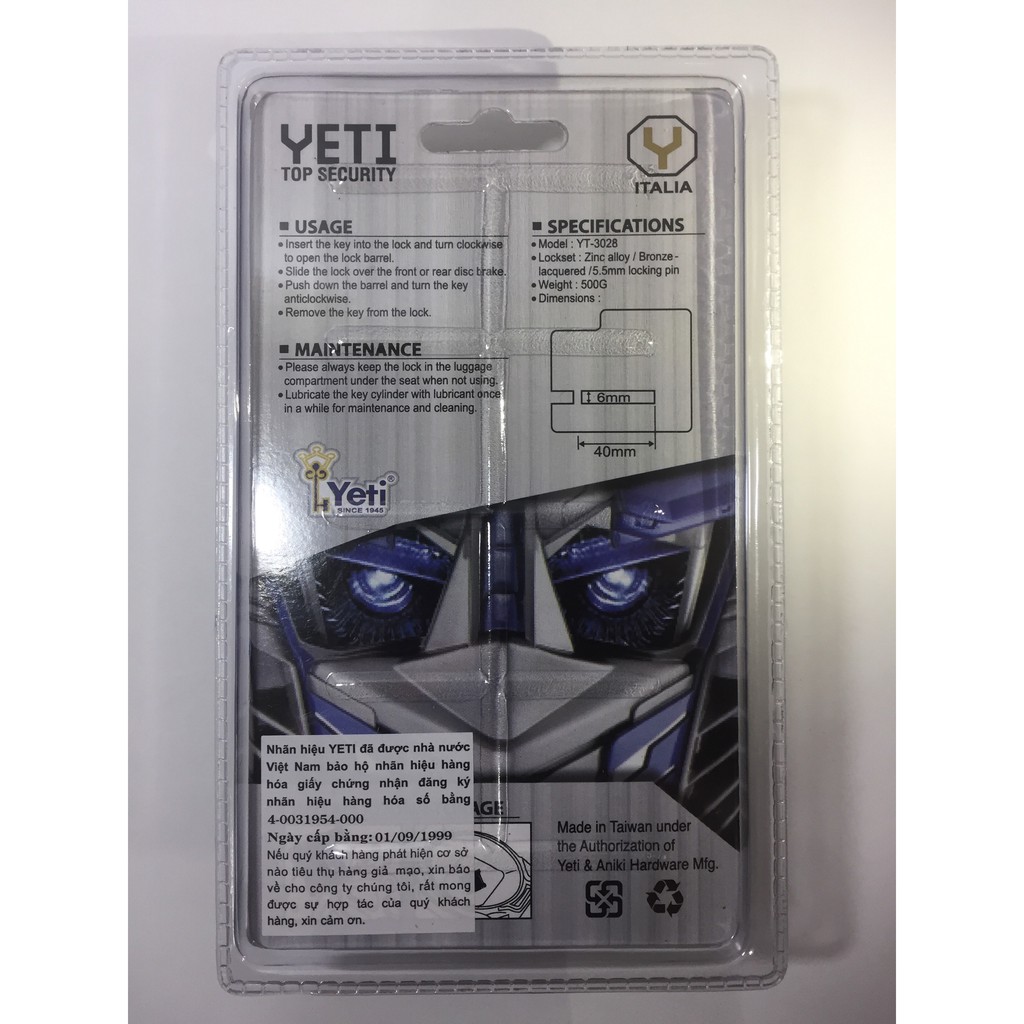 [CHÍNH HÃNG] Ổ Khóa Đĩa YETI Vuông Hợp Kim Kẽm Chịu Lực Nguyên Khối Chống Trộm Cao CấpTHÔNG TIN SẢN PHẨM: