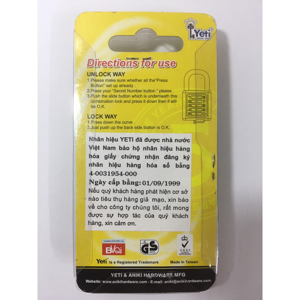 [CHÍNH HÃNG] Ổ Khóa Số Bấm YETI 10 Số 40mm L-116, Chuyên Khóa Tủ, Vali, Túi Xách, Cao CấpTHÔNG TIN SẢN PHẨM: