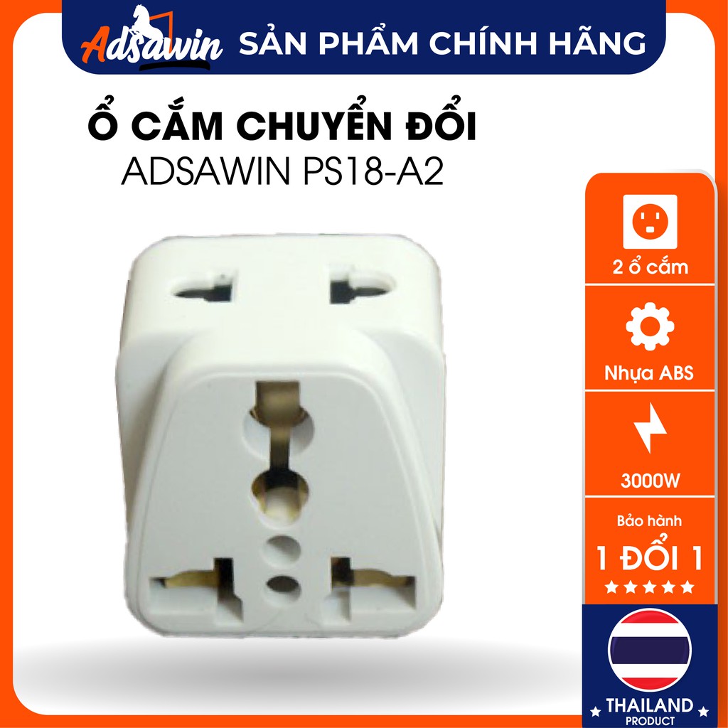 Phích cắm (ổ cắm) chia ổ TOSHINO THAILAND PS18-A2,chuyển đổi 3 chấu sang, 2000W,ABS chống cháy.*Phích cắm (ổ cắm) Chất liệu nhựa ABS cao cấp chống cháy,lõi đồng nguyên chất 100%