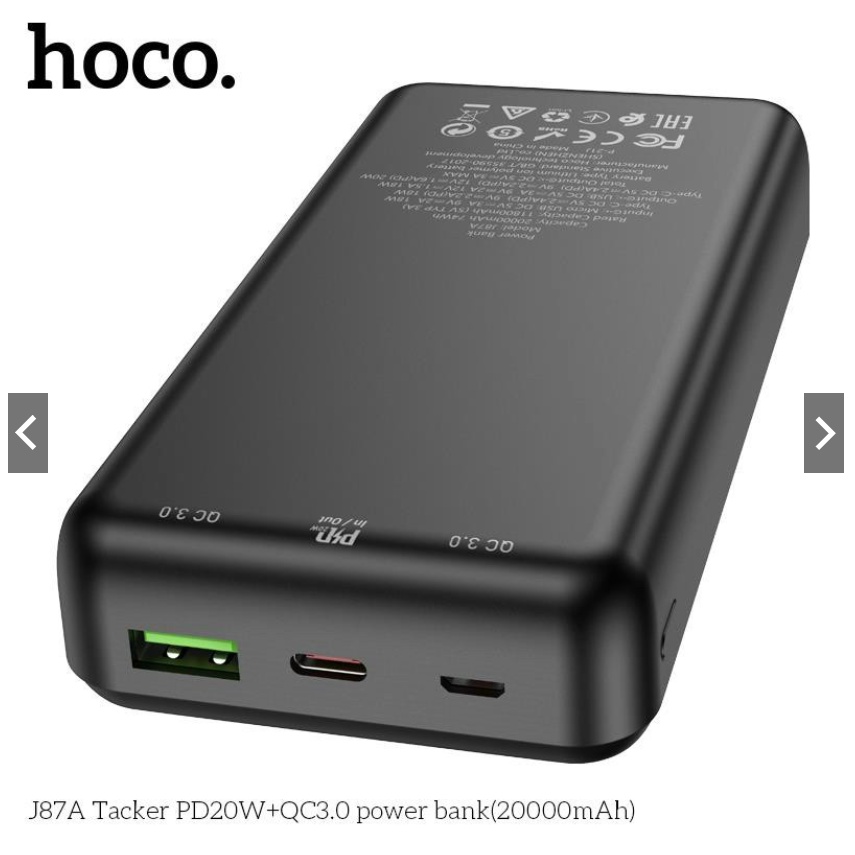 Điện Thoại & Phụ Kiện > Phụ kiện > Sạc dự phòng & Pin > Sạc dự phòng || |CHÍNH HÃNG| Pin Dự Phòng HOCO J87/J87A 10000mAh/20000mAh Sạc Nhanh PD 20W QC 3.0A Sạc Được 2 Đầu Cùng Lúc BH 12 THÁNGCòn hàng