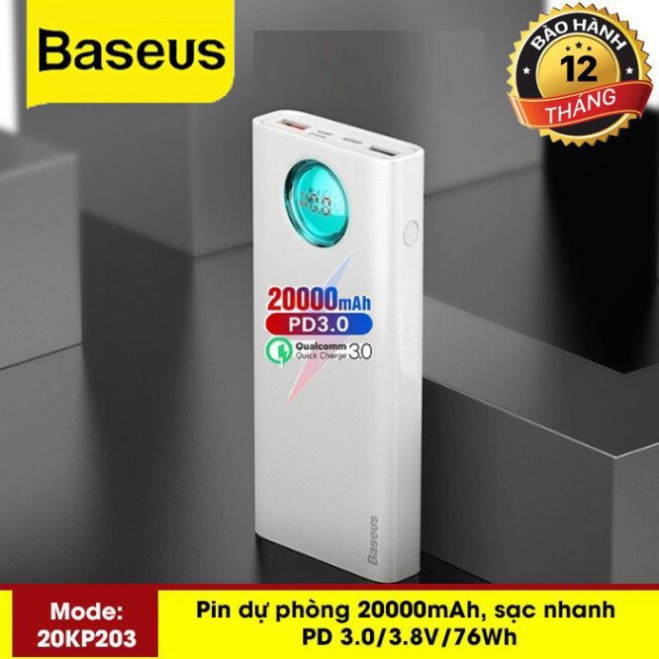 TÍNH NĂNG CƠ BẢN Pin Dự Phòng Thương Hiệu Baseus (BS-20KP203) (Đen)Cao Cấp Dung Lượng 20000mah Công Nghệ Sạc Nhanh Cổng PD 3.0 Sạc 2 Chiều Và Qualcomm QC 3.0 Thiết Kế Đẹp Độc Đáo Có Màn Hình LCD Báo Dung Lượng Pin