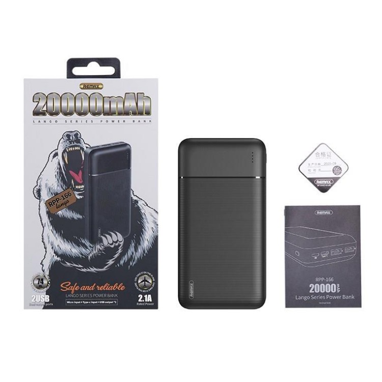 CHÍNH HÃNG Pin Sạc Dự Phòng 20000mah Remax RPP-166 Lango Series Fast Charing 2.1A tích hợp 2 cổng USB