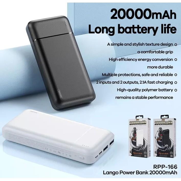 Giới thiệu CHÍNH HÃNG Pin Sạc Dự Phòng 20000mah Remax RPP-166 Lango Series Fast Charing 2.1A tích hợp 2 cổng USB