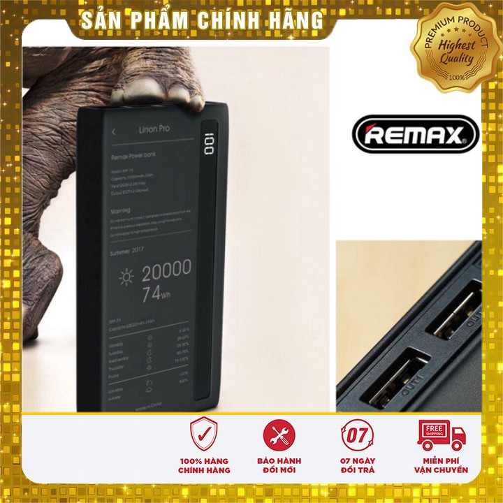 [ CHÍNH HÃNG ] PIN Sạc dự phòng remax rpp-73 dung lượng 20.000mAh có đèn hiển thi pin có đèn pin, TYPE C VÀO 11 PRO MAX
