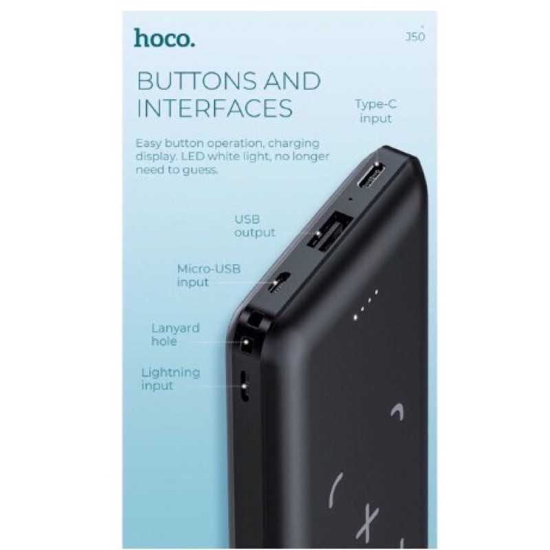 - Hoco là thương hiệu nổi tiếng của HongKong với các thiết bị,phụ kiện điện thoại được người dùng tin tưởng.Là sản phẩm mới của HOCO, pin sạc dự phòng HOCO J50 sẽ đem đến cho người dùng trải nghiệm tiện lợi.