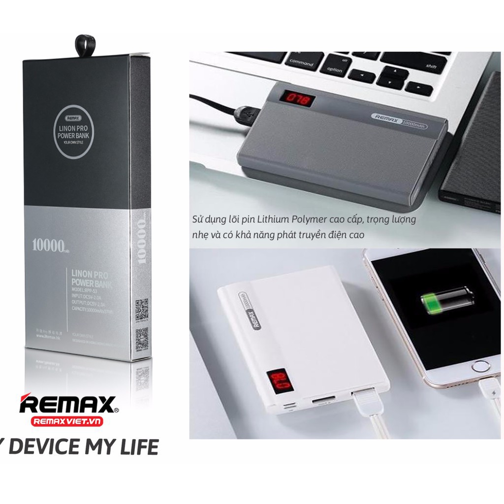 Điện Thoại & Phụ Kiện > Pin sạc dự phòng > 10000 - 20000mAh || [ CHÍNH HÃNG] PIN SẠC DỰ PHÒNG REMAX RPP-53 10.000 mAh chân sạc iphone , micro , type c, led ,2 usb - 11 PRO MAXCòn hàng
