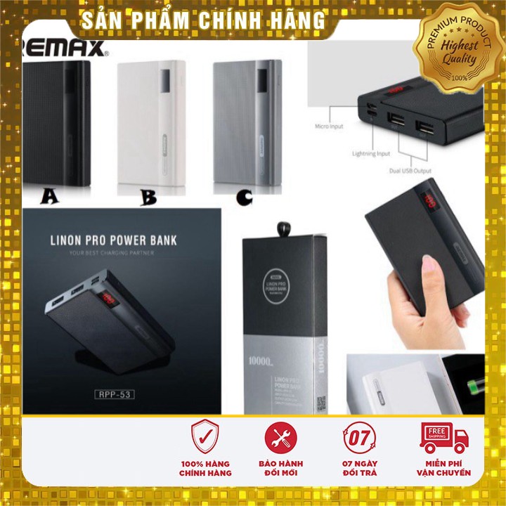 [ CHÍNH HÃNG] PIN SẠC DỰ PHÒNG REMAX RPP-53 10.000 mAh chân sạc iphone , micro , type c, led ,2 usb - 11 PRO MAX
