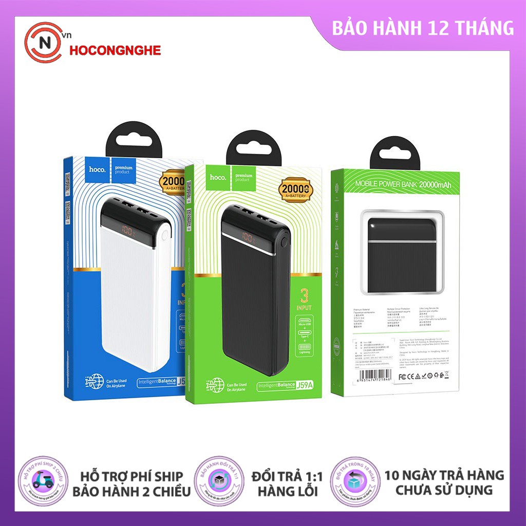 CHÍNH HÃNG Pin sạc dự phòng Hoco J59A 20000mAh hỗ trợ sạc nhanh 2 cổng đầu ra màn hình kỹ thuật số {BẢO HÀNH ĐỔI MỚI}