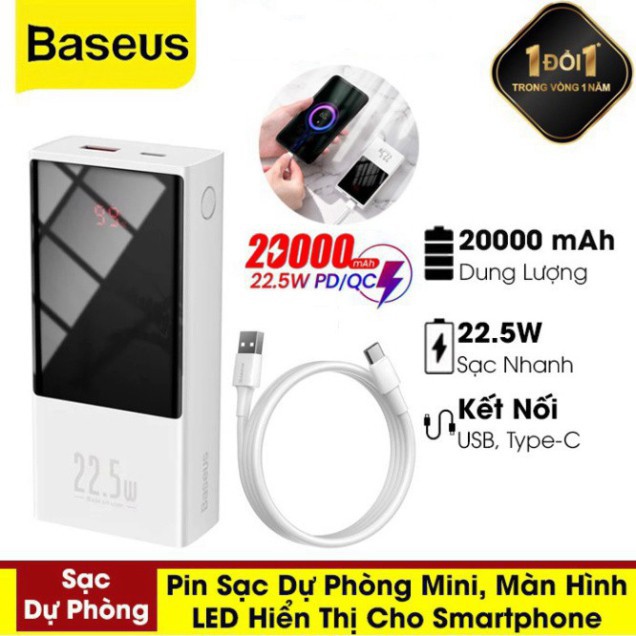 [CHÍNH HÃNG] Pin Sạc Dự Phòng Baseus 22.5W Power Bank 20000mah USB C PD Có Đèn LED Màn Hình Hiển Thị Thông Số, Sạc Nhanh