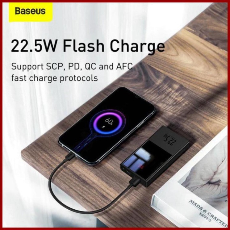 Giới thiệu [CHÍNH HÃNG] Pin Sạc Dự Phòng Baseus 22.5W Power Bank 20000mah USB C PD Có Đèn LED Màn Hình Hiển Thị Thông Số, Sạc Nhanh
