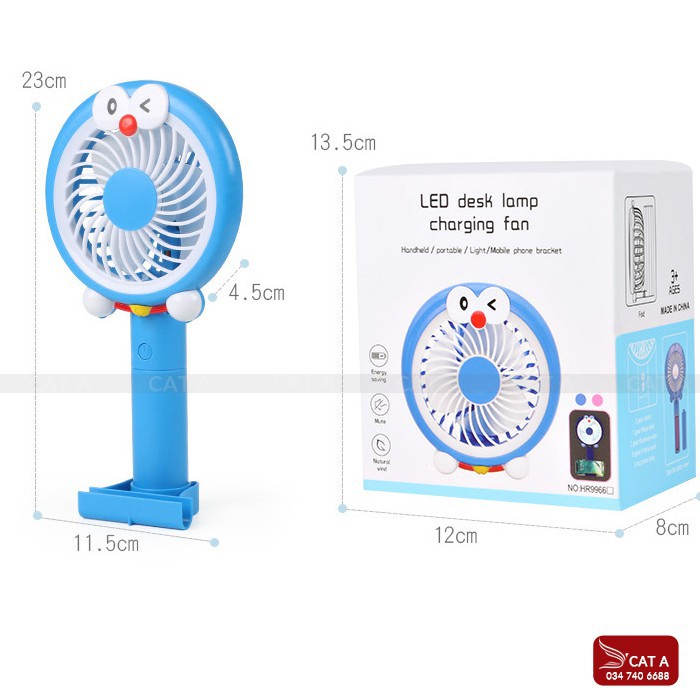 [CHÍNH HÃNG] Quạt cầm tay Mini hình Doreamon đèn LED 3 Tốc độ - Mini Fan xua tan nóng bức, nhỏ gọn tiện dụng, xinh xắn