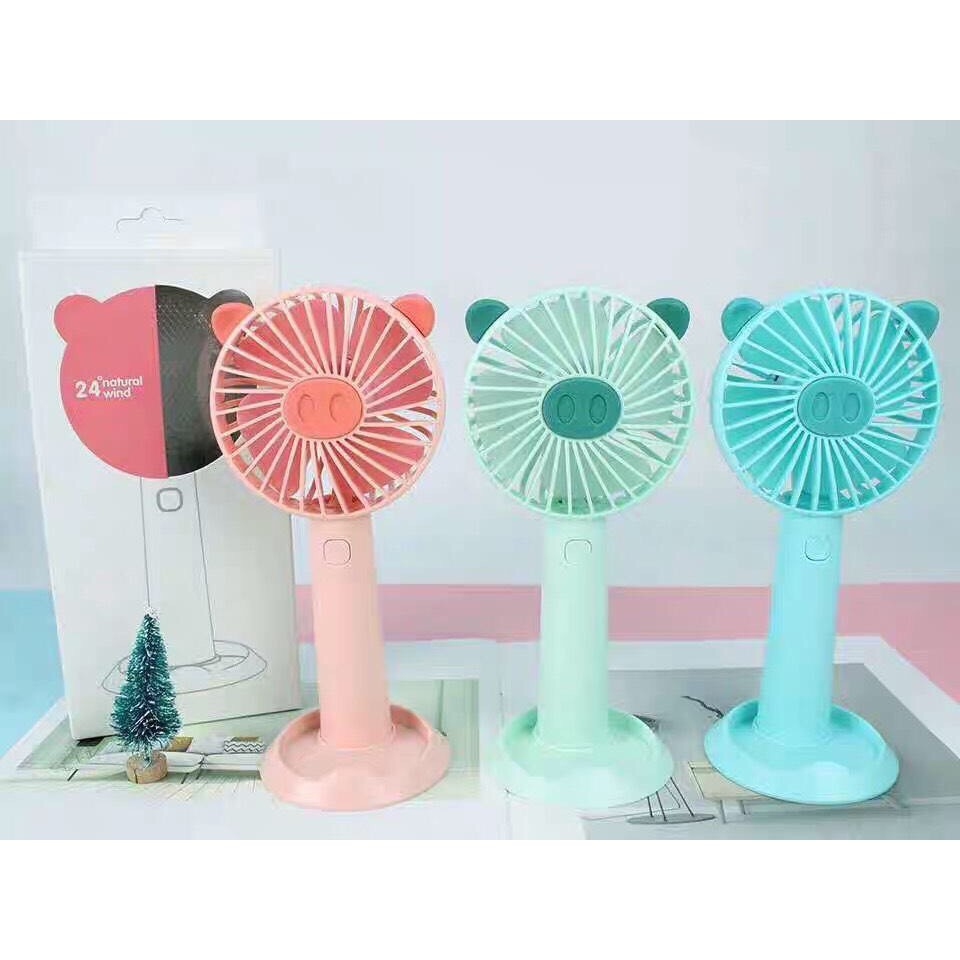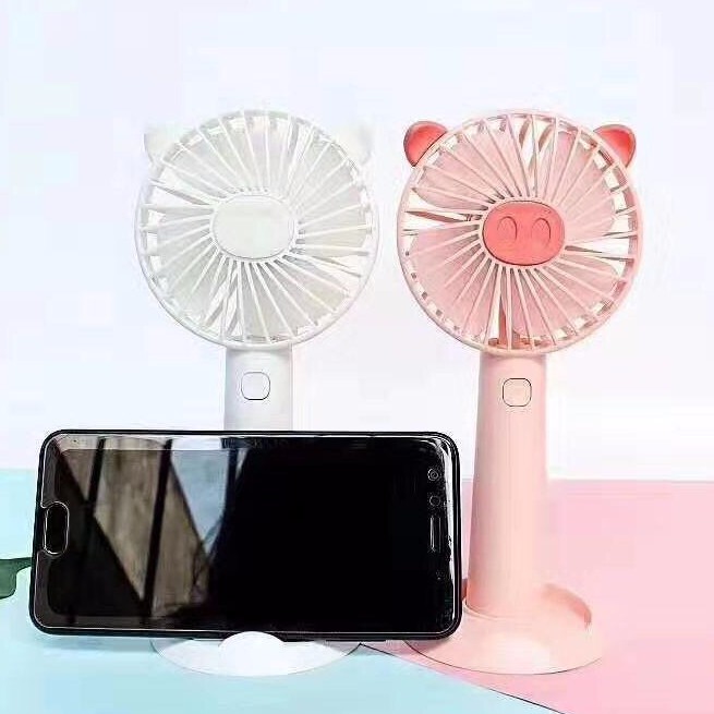 CHÍNH HÃNG Quạt cầm tay tích điện mini có đế để điện thoại hình lợn - 3 tốc độ gió - Siêu tiện lợi