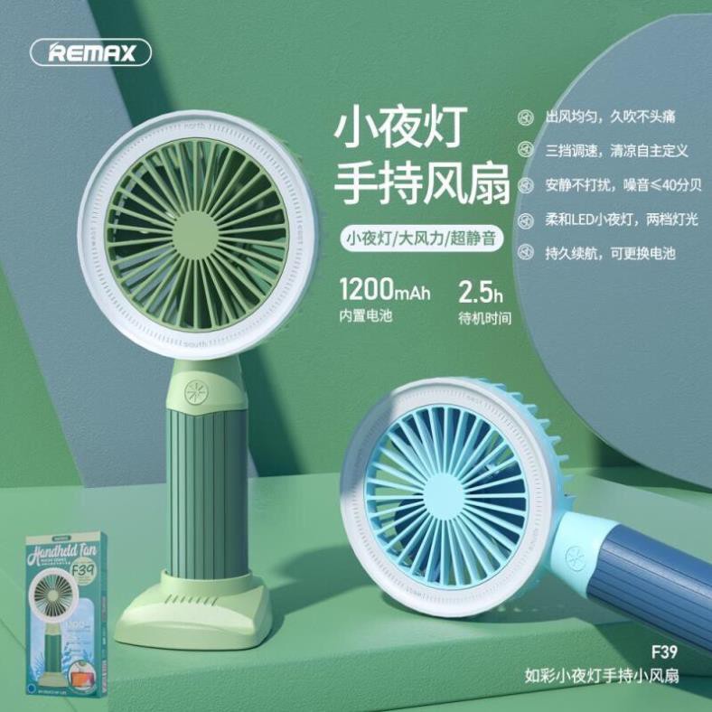 💡💡Quạt cầm tay Remax F39 chính hãng được trang bị viên pin 1200mAh có đèn led, thiết kế đa năng có thể cầm tay hoặc đặt trên mặt bàn. Đế quạt có thể sử dụng làm giá đỡ điện thoại