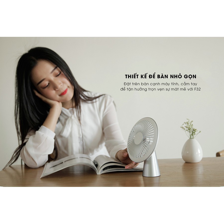Giới thiệu [CHÍNH HÃNG REMAX- BH 6 tháng] Quạt để bàn thời trang Remax F32, tích điện phù hợp với văn phòng và trẻ nhỏ