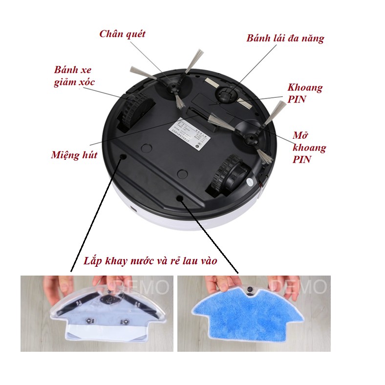 ✅ Máy lau nhà thông minh được tích hợp rẻ lau và khay nước để lau ở chế độ ẩm ướt nhắm đánh bật các vết bẩn khó đi