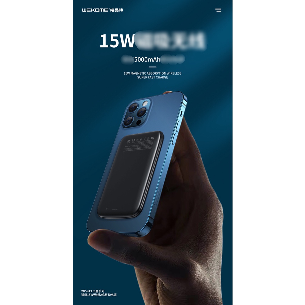CHÍNH HÃNG sạc dự phòng magsafe Kiêm Sạc Dự Phòng 5W 15W 20w Hỗ Trợ nhiều Thiết Bị wk wp 243 500mah