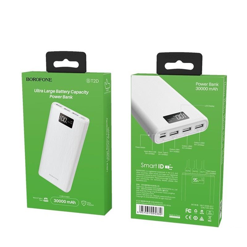 BOROFONE - Pin Sạc Dự Phòng BT2D - Dung Lượng 30000mAh, Có Đèn Led, Màn LCD là một sản phẩm của BOROFONE đến từ Hongkong, đây là thương hiệu chuyên sản xuất các phụ kiện dành cho điện thoại với các mức giá ở tầm trung nên được rất nhiều lựa chọn và tin dùng.