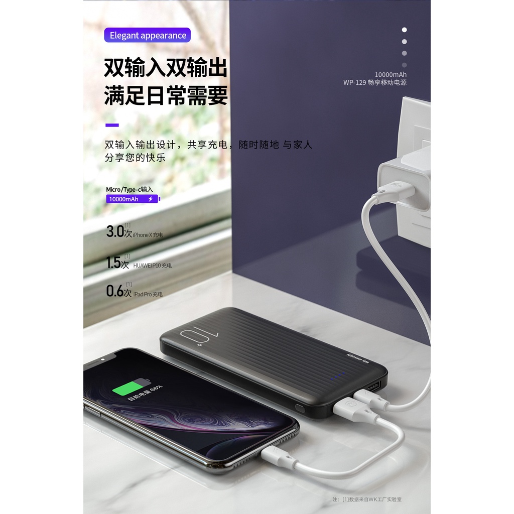 [CHÍNH HÃNG] Sạc dự phòng mini 10000mAh WK WP- 129 hỗ trợ sạc nhanh 2.1A, 2 cổng sạc