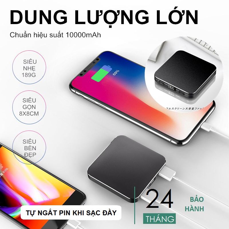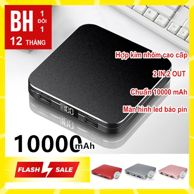 [CHÍNH HÃNG] Sạc Dự Phòng 10000mAh Chuẩn Hỗ Trợ 2 input/2 output, Tự ngắt pin khi sạc đầy, BH 12 tháng