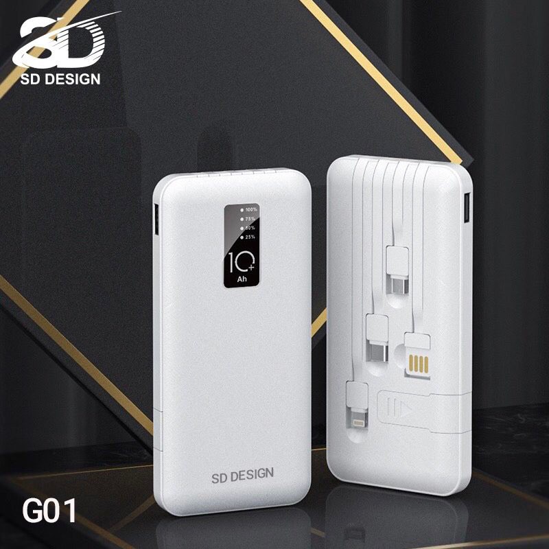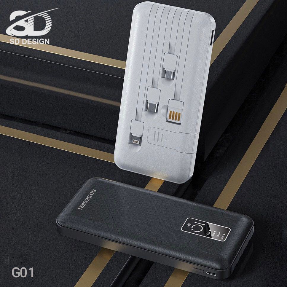 Pin Sạc dự phòng Chính Hãng SD Design G01 - Kèm 4 cáp sạt - giá đỡ, đèn pin, Sạc Nhiều Thiết Bị Cùng Lúc, Dung lượng pin 10000mAh[FREE SHIP CHO ĐƠN HÀNG TỪ 50K TRỞ LÊN]