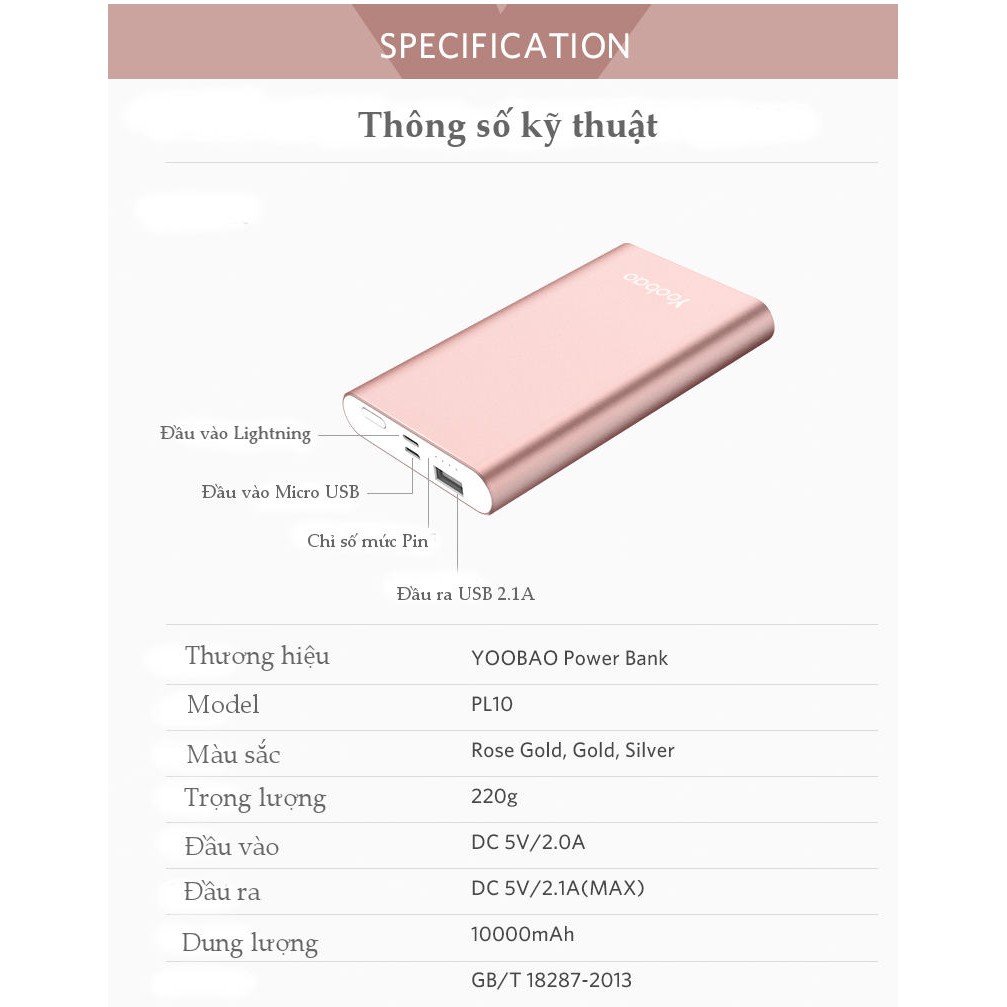Điện Thoại & Phụ Kiện > Pin sạc dự phòng > 5000 - 10000mAh || [Mã ELFLASH5 giảm 20K đơn 50K] ✪ CHÍNH HÃNG ✪ Sạc dự phòng Yoobao Polymer 10000mAh PL10Còn hàng