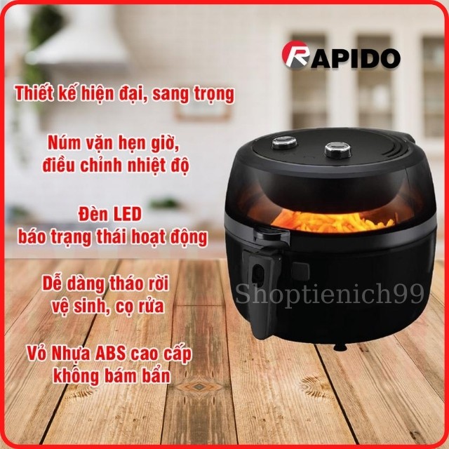 [CHÍNH HÃNG/SIÊU RẺ] Nồi Chiên Không Dầu Rapido RAF-6.5M2 Lồng Rộng Nướng Cả Con Gà, Hàng Chính Hãng BH 12 Tháng.