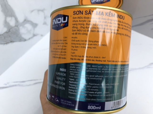 ⚡ Bảo hành không bong tróc✅ Sơn sắt mạ kẽm INDU gồm nhựa Acrylic đặc biệt và bột màu.