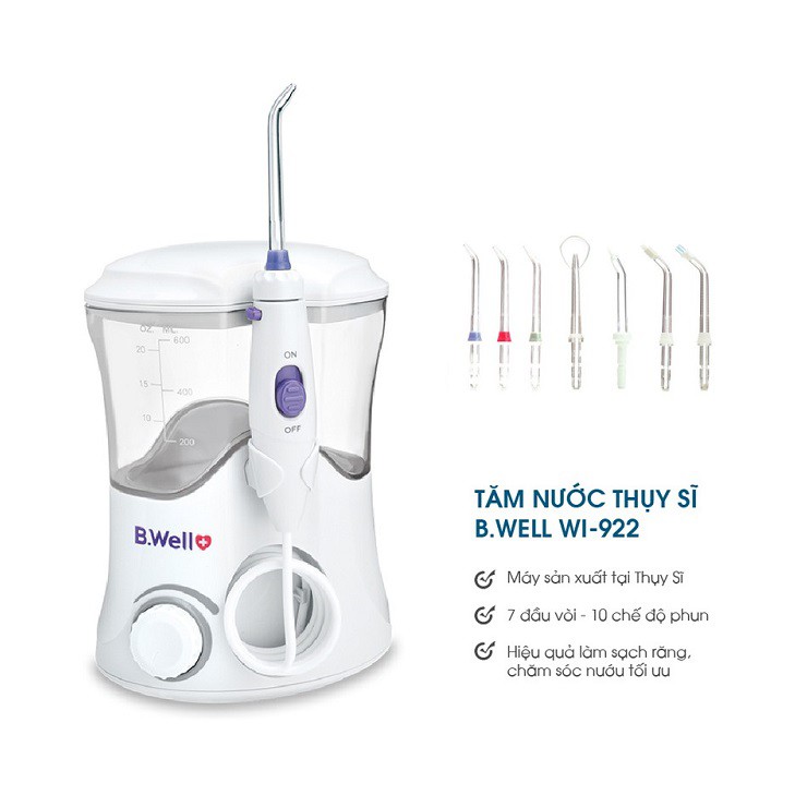 Giới thiệu [CHÍNH HÃNG] TĂM NƯỚC B-WELL WI-922 - 7 đầu vòi- 10 Chế độ Vệ sinh răng miệng