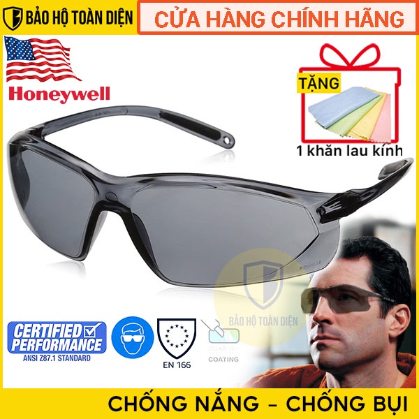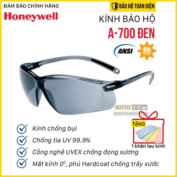 (CHÍNH HÃNG)[TẶNG KHĂN LAU KÍNH] Kính chống bụi Honeywell Sperian A700 đen. Kính bảo hộ chống bụi, chống tia UV