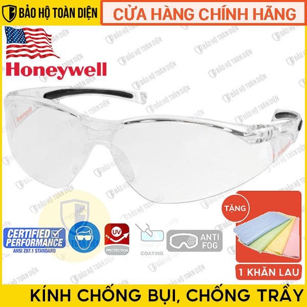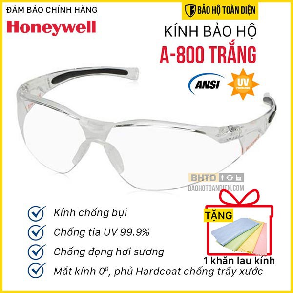 (CHÍNH HÃNG)[TẶNG KHĂN LAU KÍNH] Kính chống bụi Honeywell Sperian A800 trắng.Kính bảo hộ chống bụi, chống tia UV