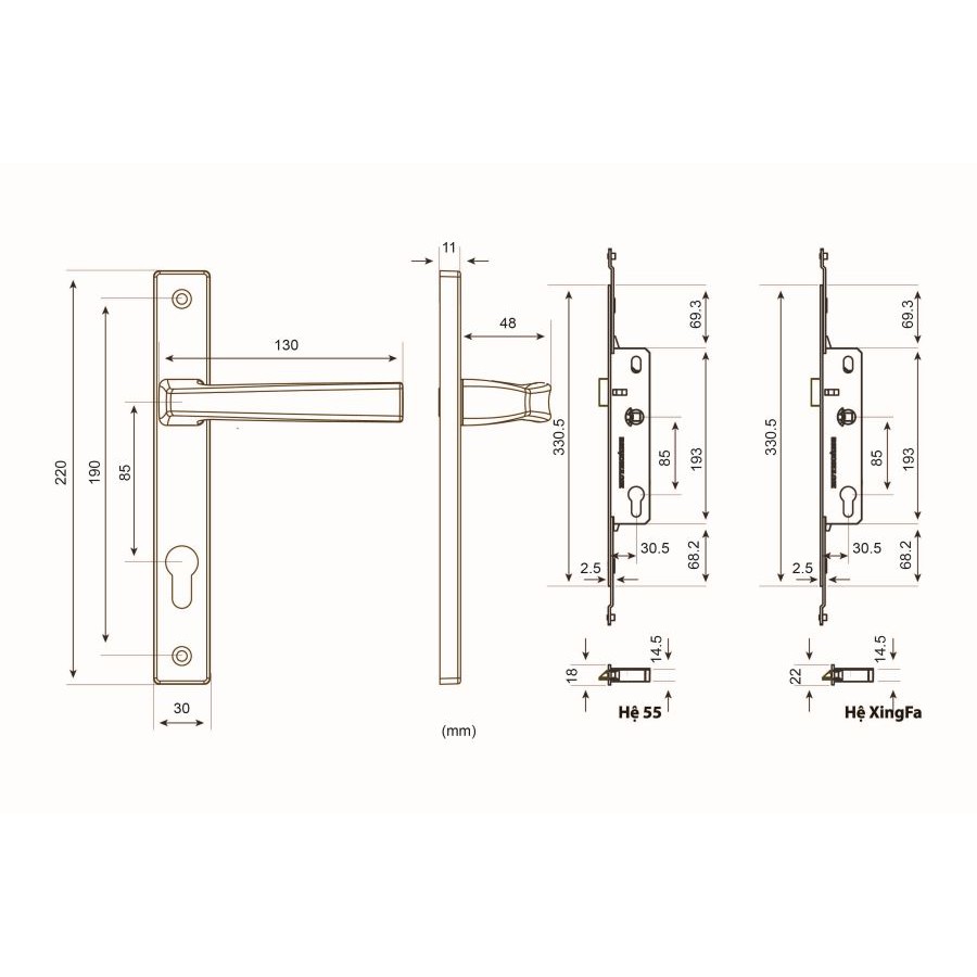 Sản phẩm khóa tay nắm TNAPDDEX68 : có 2 phiên bản thân phù hợp với các loại nhôm hệ thông dụng như Hệ 55, Hệ XingFa...