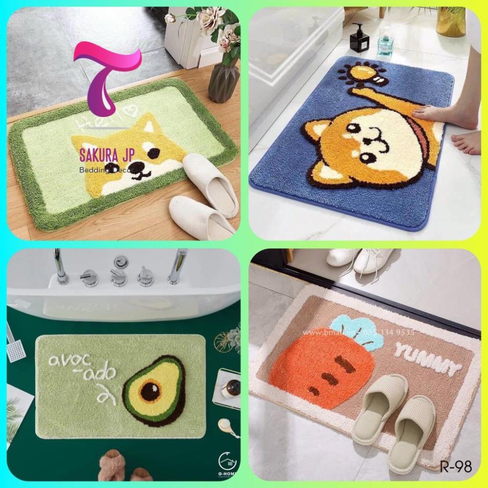 CHÍNH HÃNG- Thảm Chùi Chân Hoa Tiết 3D Thảm Chống Trượt Bếp Nhà Tắm Thảm Chùi Chân Lông Cừu Sakura JP Bedding Decor