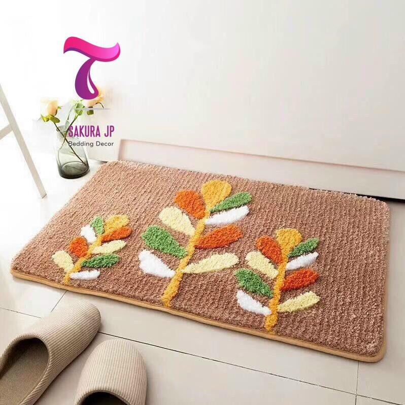 Giới thiệu CHÍNH HÃNG- Thảm Lót Cửa Chống Trượt Cành Hoa Non Thảm Lau Chân Thảm Chùi Chân Lông Cừu Sakura JP Bedding Decor