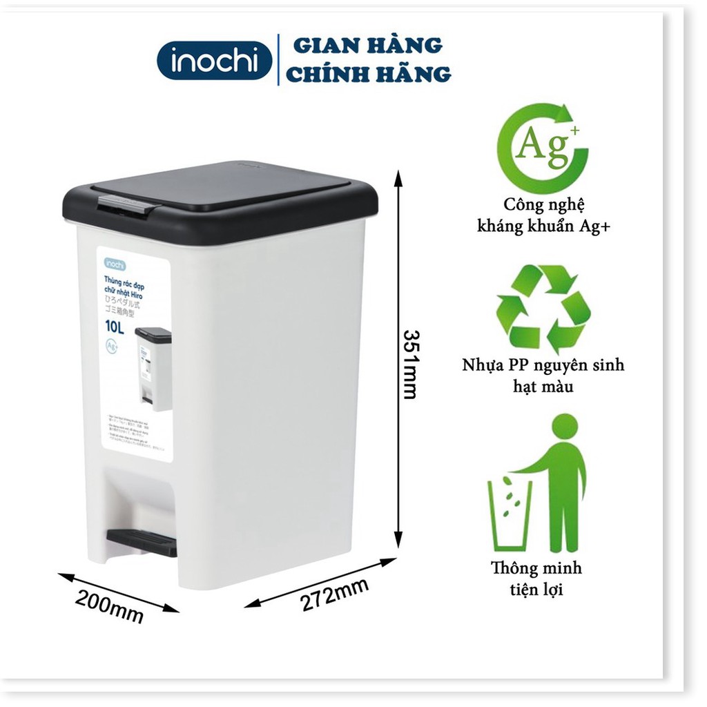 [CHÍNH HÃNG] Thùng Rác Mini -Nhựa Đạp Chân Nắp Đậy Chữ Nhật HIRO INOCHI 10 Lít Làm Sọt Rác Văn Phòng , Gia Đình TRAC10Mã SP: HIN.RACN.0010