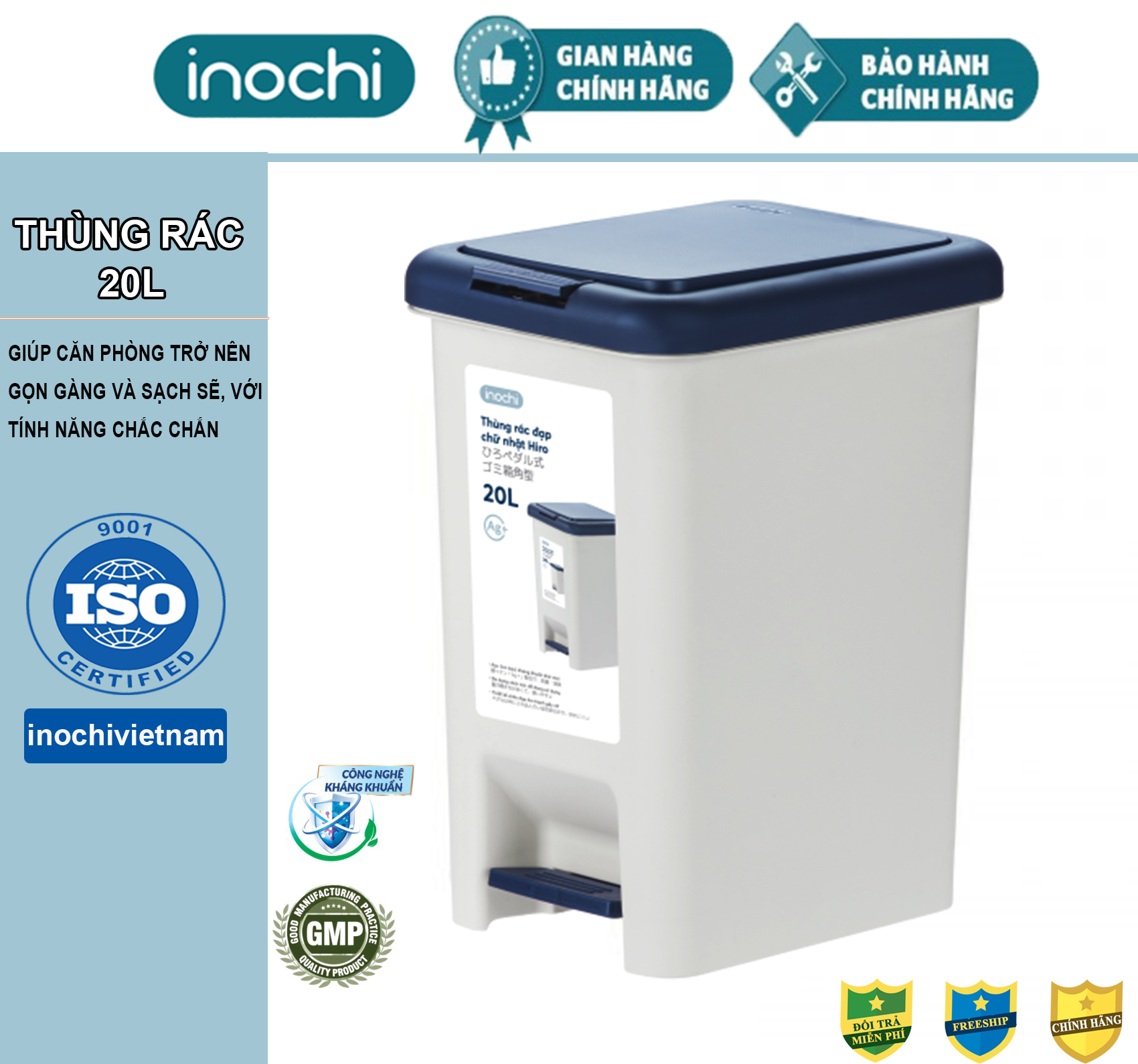 [CHÍNH HÃNG] Thùng Rác - Nhựa Đạp Chân Nắp Đậy Chữ Nhật INOCHI 20 Lít Làm Sọt Rác Văn Phòng,Đựng Rác Gia Đình, Trong Nhà TRAC20Nguyên liệu nhựa nguyên sinh cao cấp, an toàn cho sức khoẻ.