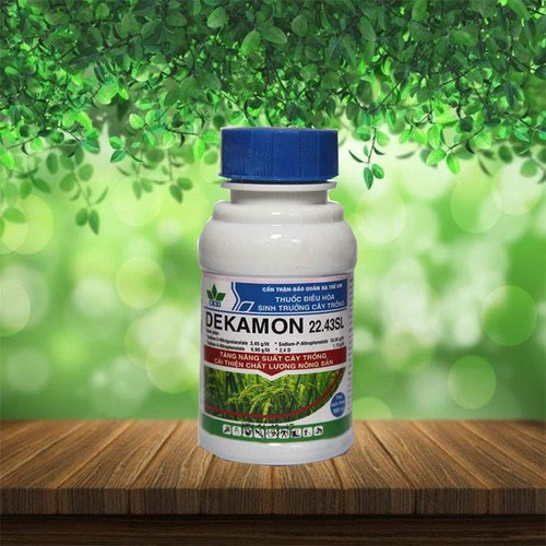 – Dekamon 22.43 L giúp làm chắc hạt lúa, đậu, bắp…, cây ăn trái tích luỹ nhiều đường, rau quả tích lũy nhiều vitamin C.– Dekamon 22.43 L làm tăng năng suất tối đa cây trồng và chất lượng nông sản.– Dekamon 22.43 L an toàn cho cây trồng, không gây độc cho người và môi trường.– Dekamon 22.43 L có thể được sử dụng trên hầu hết các loại cây trồng và dễ dàng xử lý vào các giai đoạn sinh trưởng của cây từ giai đoạn nẩy mầm cho đến khi thu hoạch.Xử lý giống:• Lúa: pha nước nồng độ 0,03% (3 ml trong 10 lít nước), ngâm hạt giống trong 12 giờ, xong vớt ra ủ bình thường.• Hạt rau cải, dưa hấu, dưa leo, cà chua, bầu, bí…: pha nước với nồng độ 0,02% (2 ml trong 10 lít nước), ngâm hạt giống trong dung dịch thuốc 4-6 giờ trước khi gieo.• Bắp, đậu phộng, đậu nành, đậu xanh…: pha 1 ml/5 lít nước, ngâm hạt giống trong dung dịch thuốc 4-6 giờ trước khi gieo.• Cành giâm, cành chiết: pha 1 ml/1 lít nước, nhúng đầu cành giâm, cành chiết trong dung dịch thuốc 1 giờ.Phun lên cây trồngHướng dẫn sử dụng theo đăng ký ở Việt Nam:Thuốc Dekamon 22.43 L đã đăng ký dùng kích thích sinh trưởng trên lúa, đậu.Chú ý:– Dekamon 22.43 L có thể pha chung với các thuốc BVTV khác.– Nên phối hợp Dekamon 22.43 L với phân bón lá để cho hiệu quả cao hơn.– Dekamon 22.43 L là thuốc kích thích sinh trưởng nên khi sử dụng phải bón phân cho cây trồng đủ thành phần (phân hữu cơ, đạm, lân, kali, vi lượng…) và số lượng như canh tác bình thường.