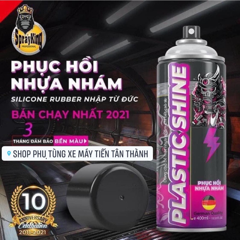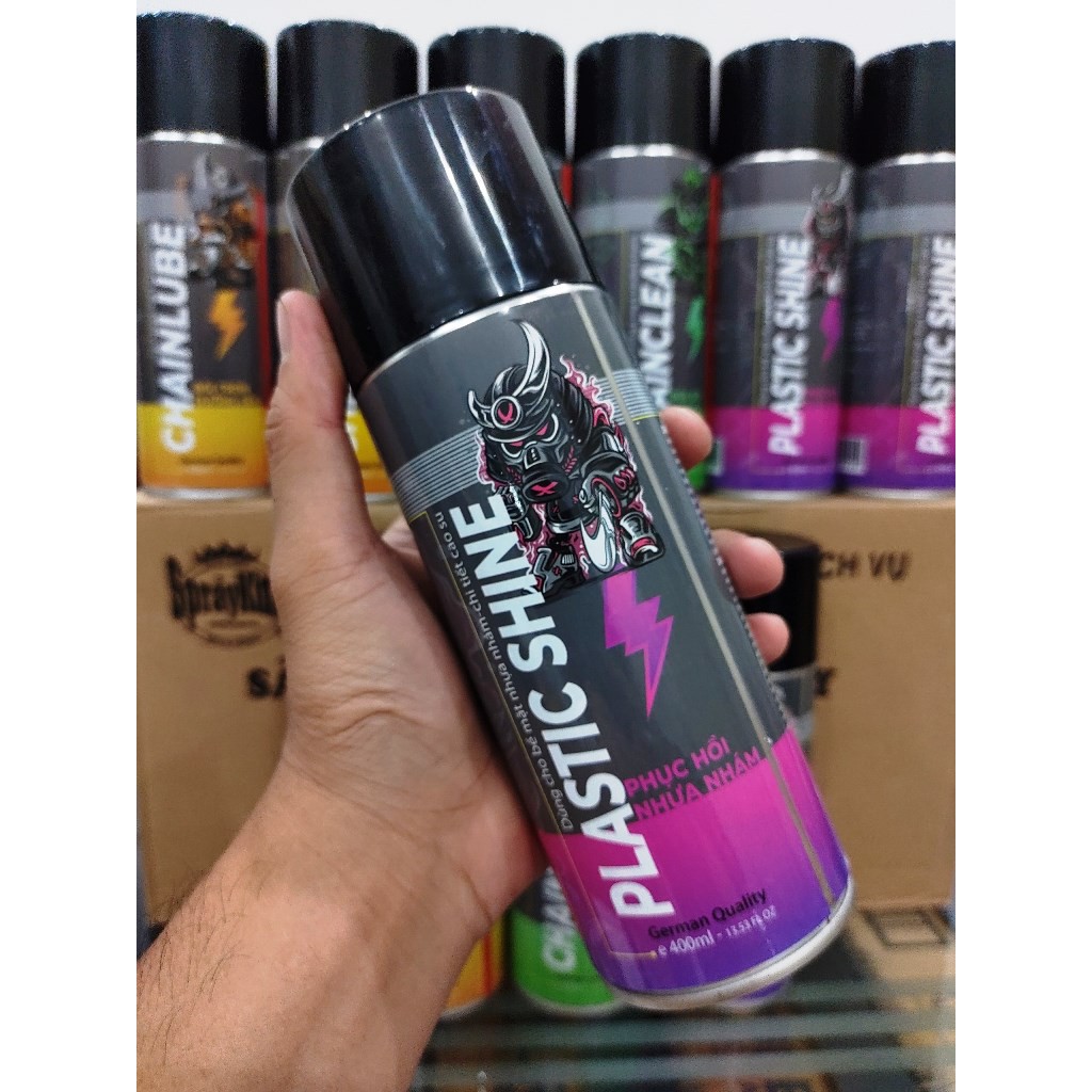 ***SPRAYKING PLASTIC SHINE: xịt phục hồi, bảo vệ nhựa nhám, cao su, vỏ xe, áo xe- Giúp sạch vết bẩn, tăng độ bóng cho dàn áo của xe.