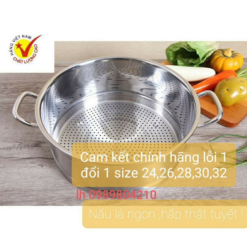 (CHÍNH HÃNG )Xửng hấp xôi inox 430 Viet Cook size 24,26,28,30,32, ngăn xửng hấp xôi ,đồ xôi, bánh... inox size