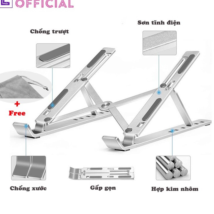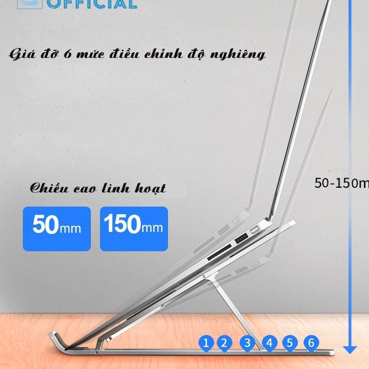 ✅Tính năng nổi bật: Giá Đỡ Laptop Bằng Nhôm Có Thể Gấp Gọn, 6 Mức Điều Chỉnh Độ Cao | Giá Đỡ Tản Nhiệt Laptop Macbook - Tặng Kèm Túi Đựng