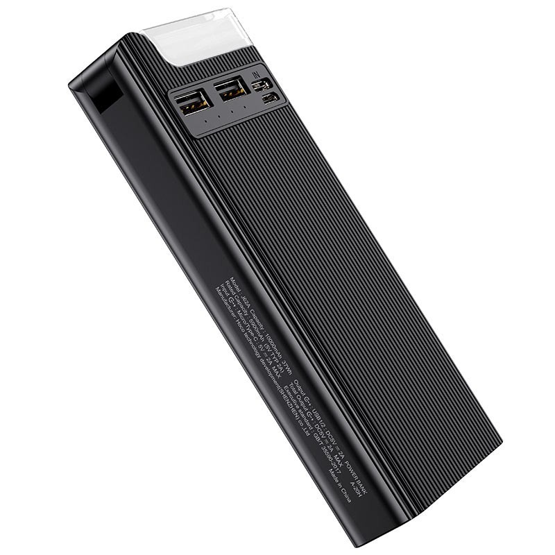 Sạc dự phòng Hoco J62A dung lượng 10000mAh, đặc biệt có thêm đèn LED để đọc sách, công suất tiêu thụ, tiêu hao khi sạc đạt 70%, có thể sạc đầy từ 2-2,5 lần cho điện thoại dung lượng pin 3000mAh (như iPhone XS Max hoặc Samsung S10 Plus) tích hợp 2 cổng ra USB, 2 cổng vào MicroUSB và Type C để cắm điện cho SDP này, trên J62A có đèn LED hiển thị vạch pin. J62A sạc cho tất cả các thiết bị điện thoại Smartphone và máy tính bảng.