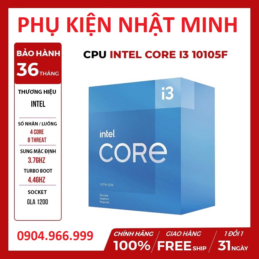 Máy tính & Laptop > Linh Kiện Máy Tính > CPU - Bộ Vi Xử Lý || [CHIP FULL BOX HÃNG] Bộ vi xử lý CPU Intel Core i3 10100F/ i3 10105F/ i3 10105 Socket Intel LGA 1200 - BH 36 thángCòn hàng